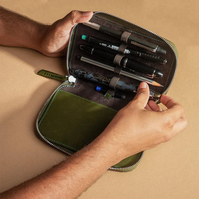 Endless Companion Leather Adjustable Pen Pouch - 5 Pens - Green