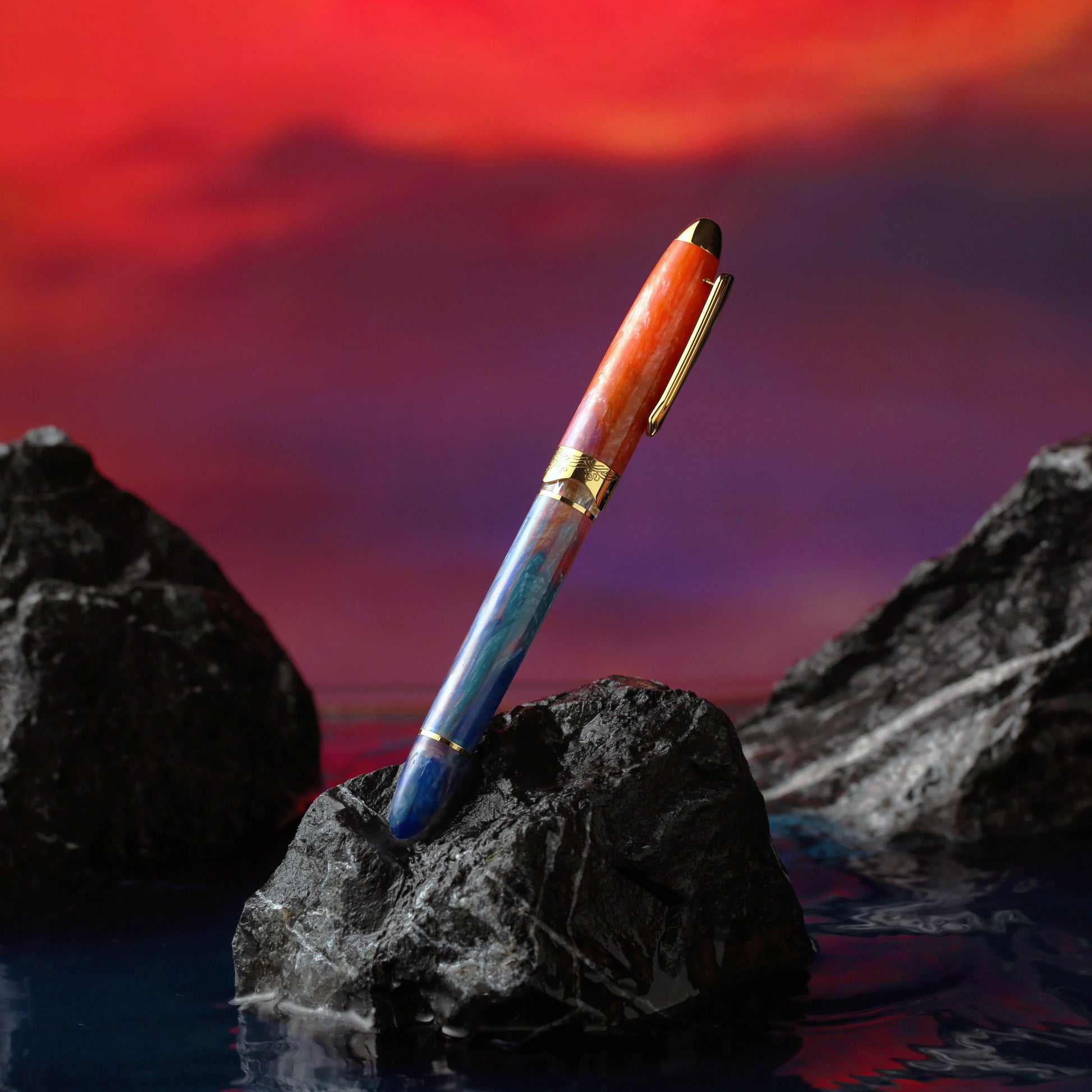 Each pen is made from a uniquely hand-crafted piece of resin that beautifully fades between captivating colors that were meticulously picked, and each resin is one of a kind! With its classic cigar shape, and breathtaking color, the Horizon collection brings a creative modern twist to beloved design. It is a perfect companion for road trips, days in the office, and for leaving a superb impression at any event.